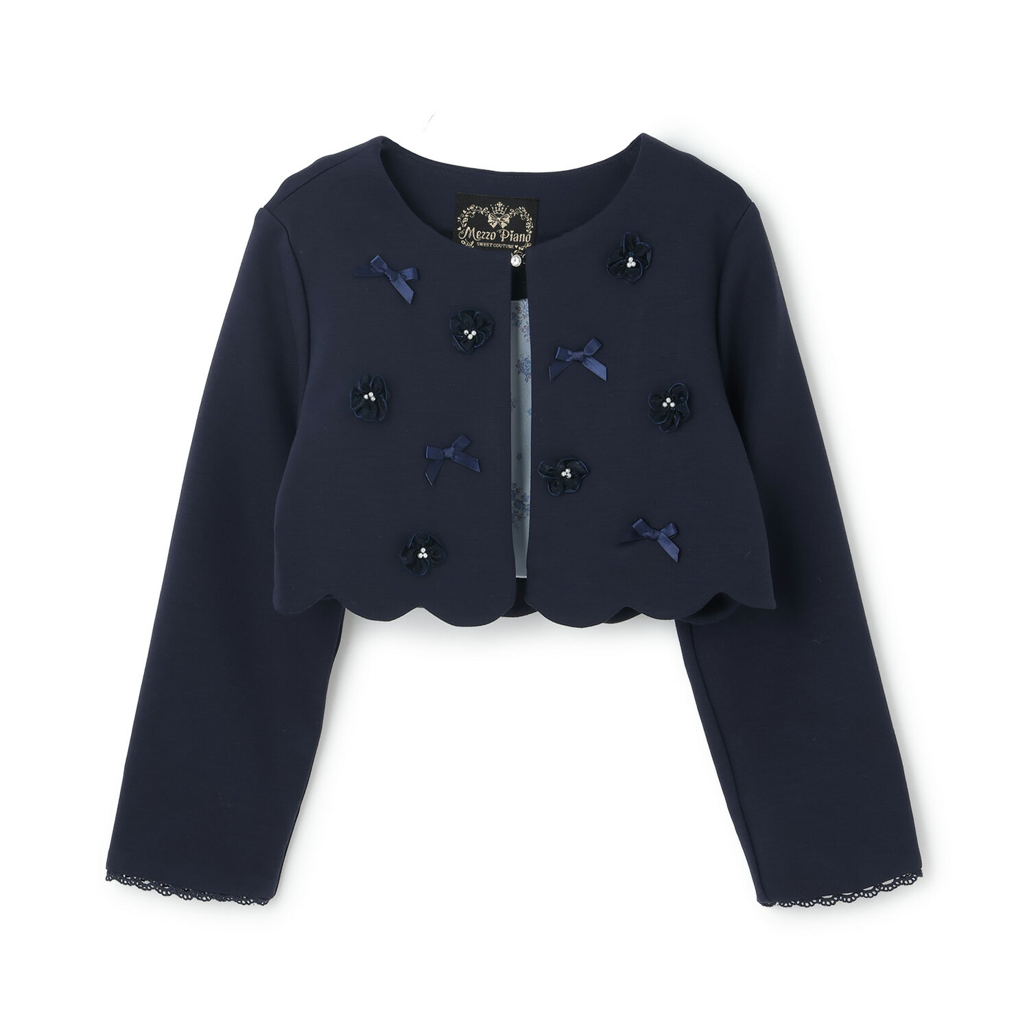 メゾピアノ(mezzo piano)花モチーフ裾スカラップ ジャケット