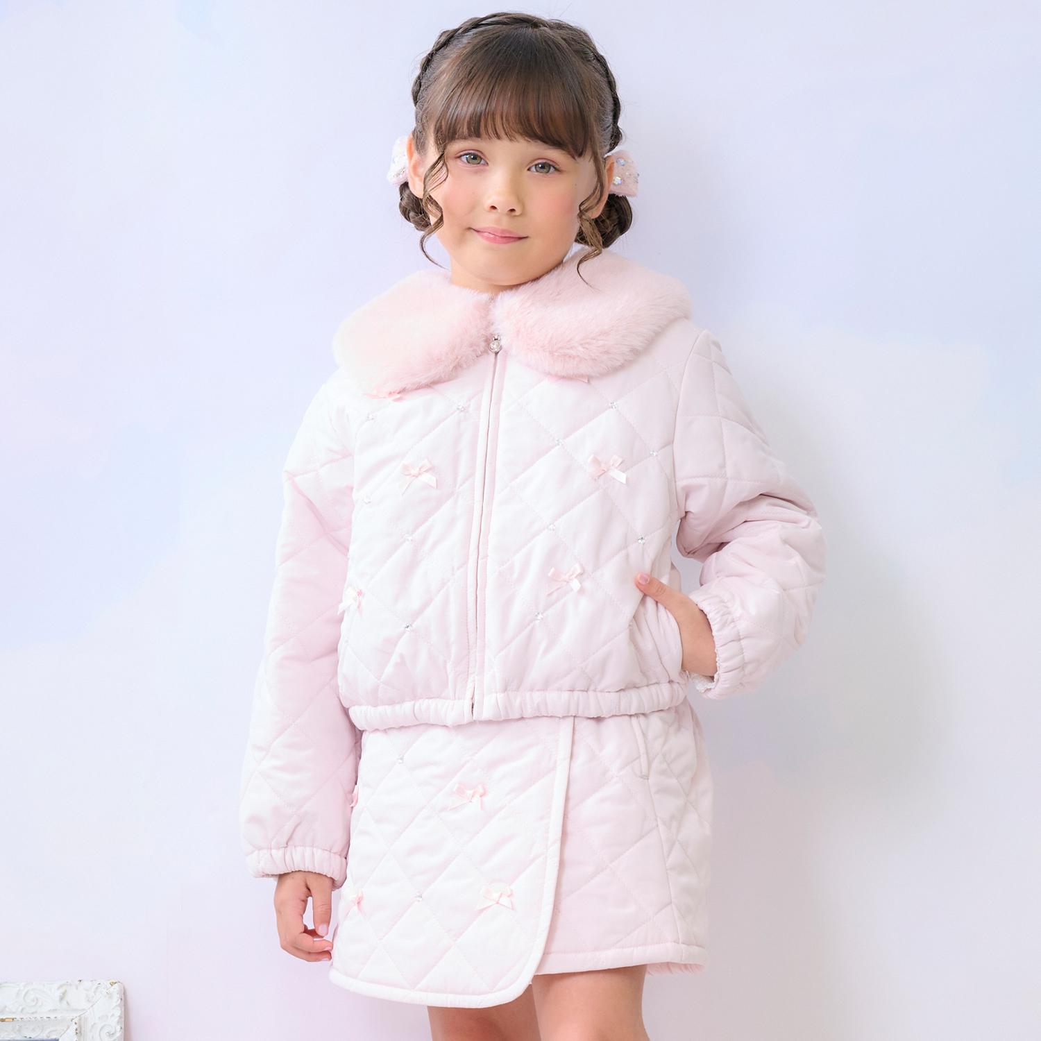 メゾピアノ(mezzo piano)リボンキルティング フェイクファー衿つきブルゾン