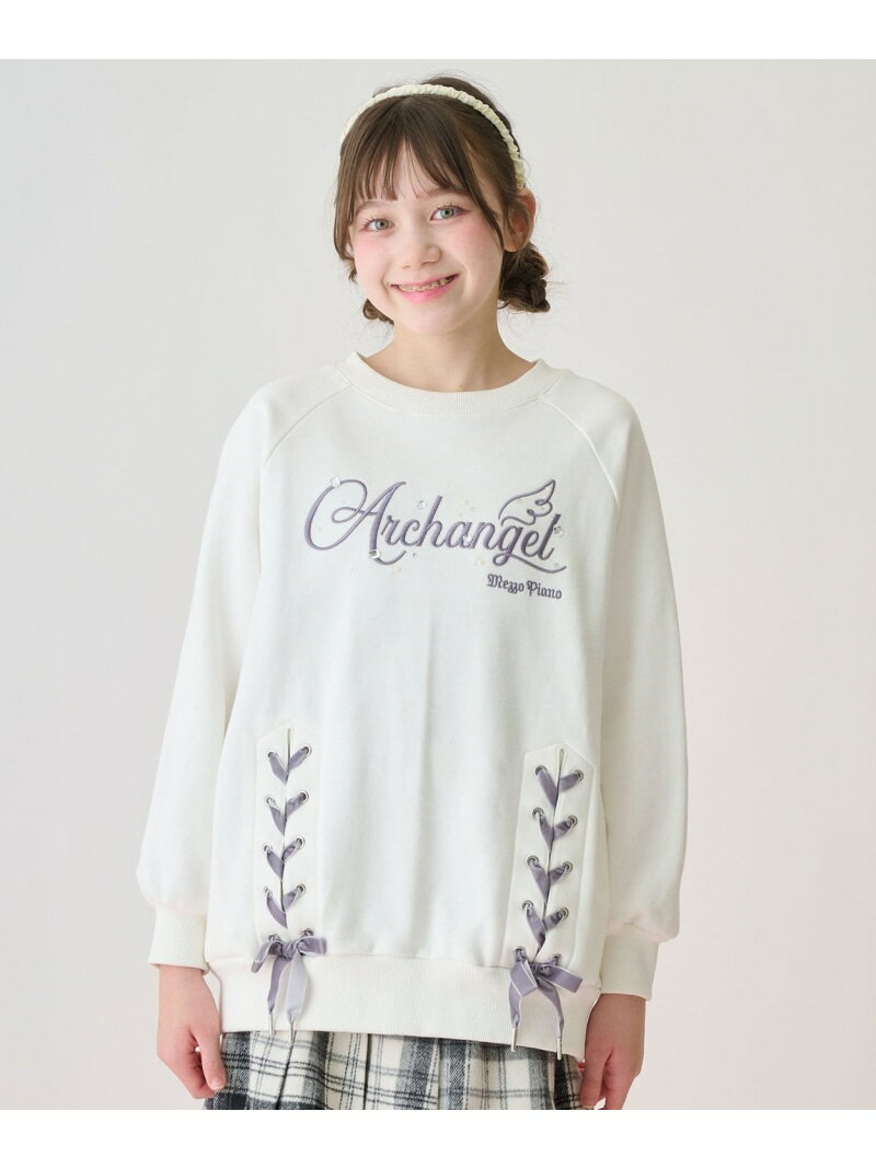mezzo piano Junior レースアップビジューロゴトレーナー ナルミヤオンライン トップ・・・