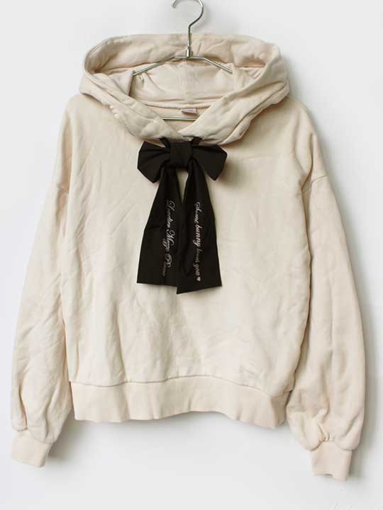 メゾピアノ フード付きトレーナー 160cm キッズ 女児 アイボリー×黒【中古】★