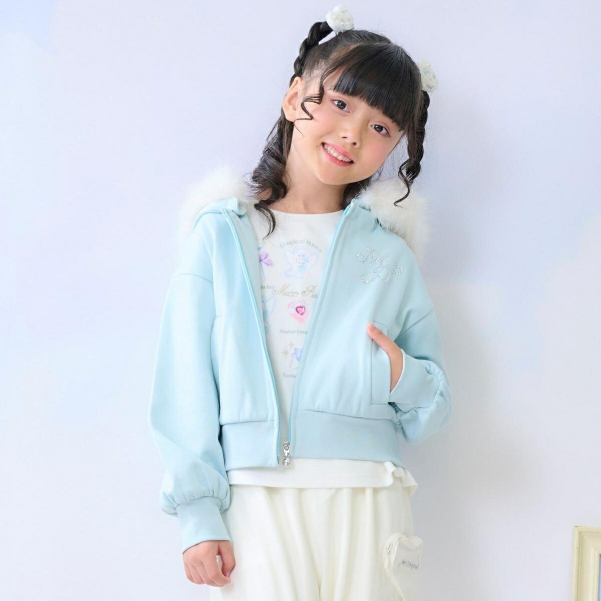 ラメ裏毛 フェイクファーフードZIPパーカ/メゾピアノ(mezzo piano)