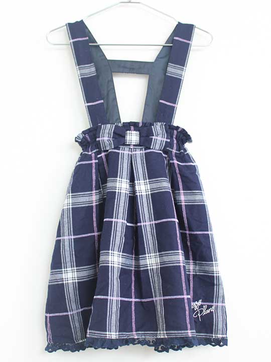 メゾピアノ サスペンダー付スカート 120cm キッズ 女児 紺×ピンク【中古】†