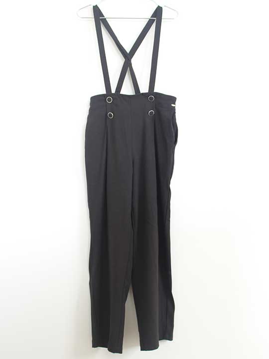 メゾピアノ サスペンダー付きロングパンツ 150cm キッズ 女児 黒【中古】†