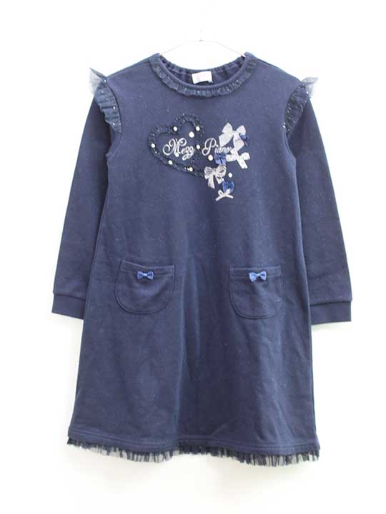 【楽天スーパーSALE!】メゾピアノ 長袖ワンピース 140cm キッズ 女児 紺【中古】●