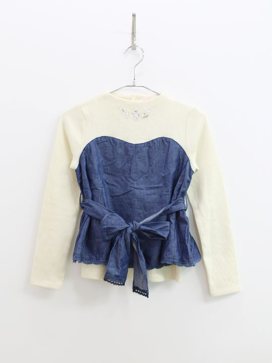 【楽天スーパーSALE!】メゾピアノ レイヤード風長袖カットソー 140cm キッズ 女児 白×イン・・・
