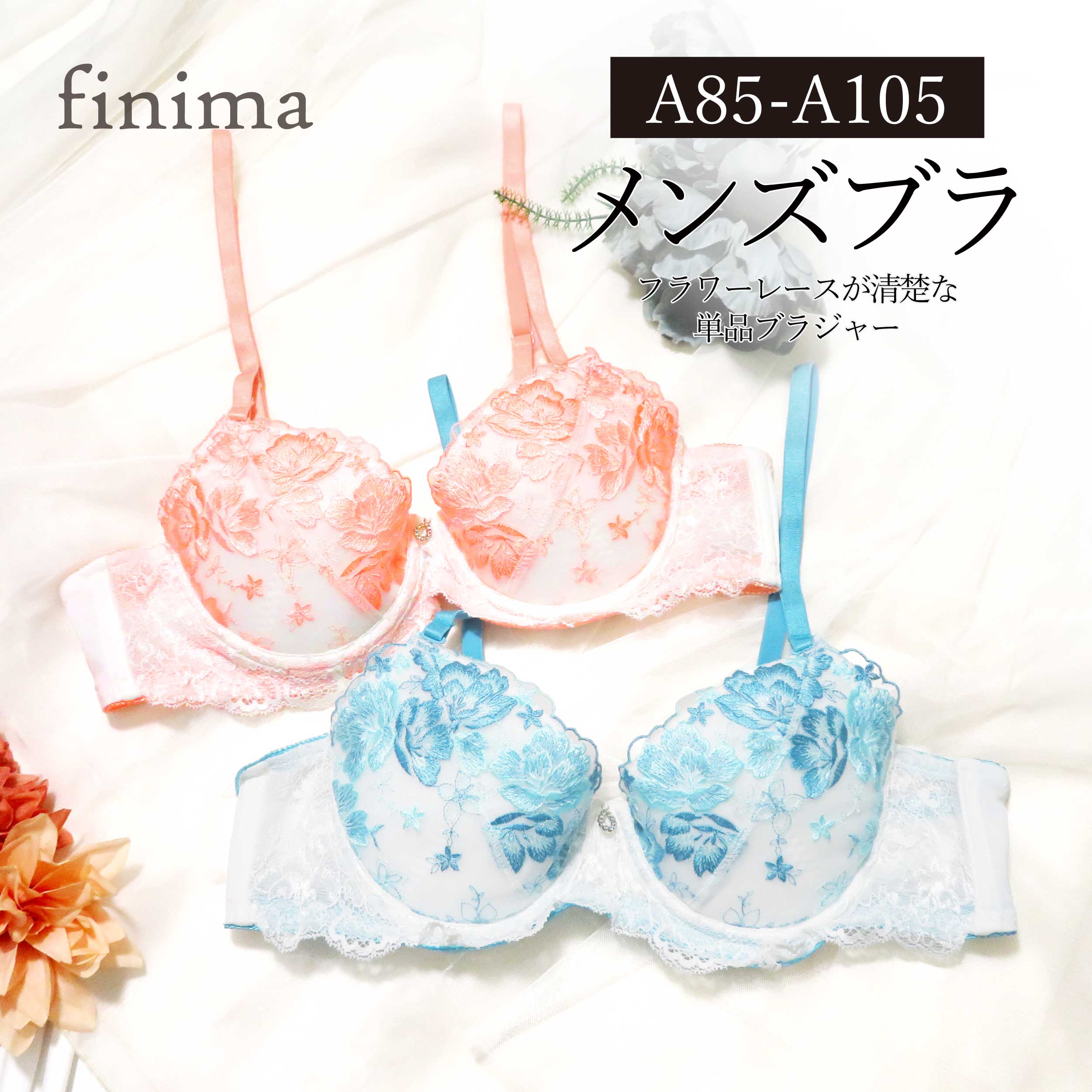 メンズ ブラジャー A85-A105 フラワー 清楚 メンズ体型用 パッド入り (JM-2182-B・・・