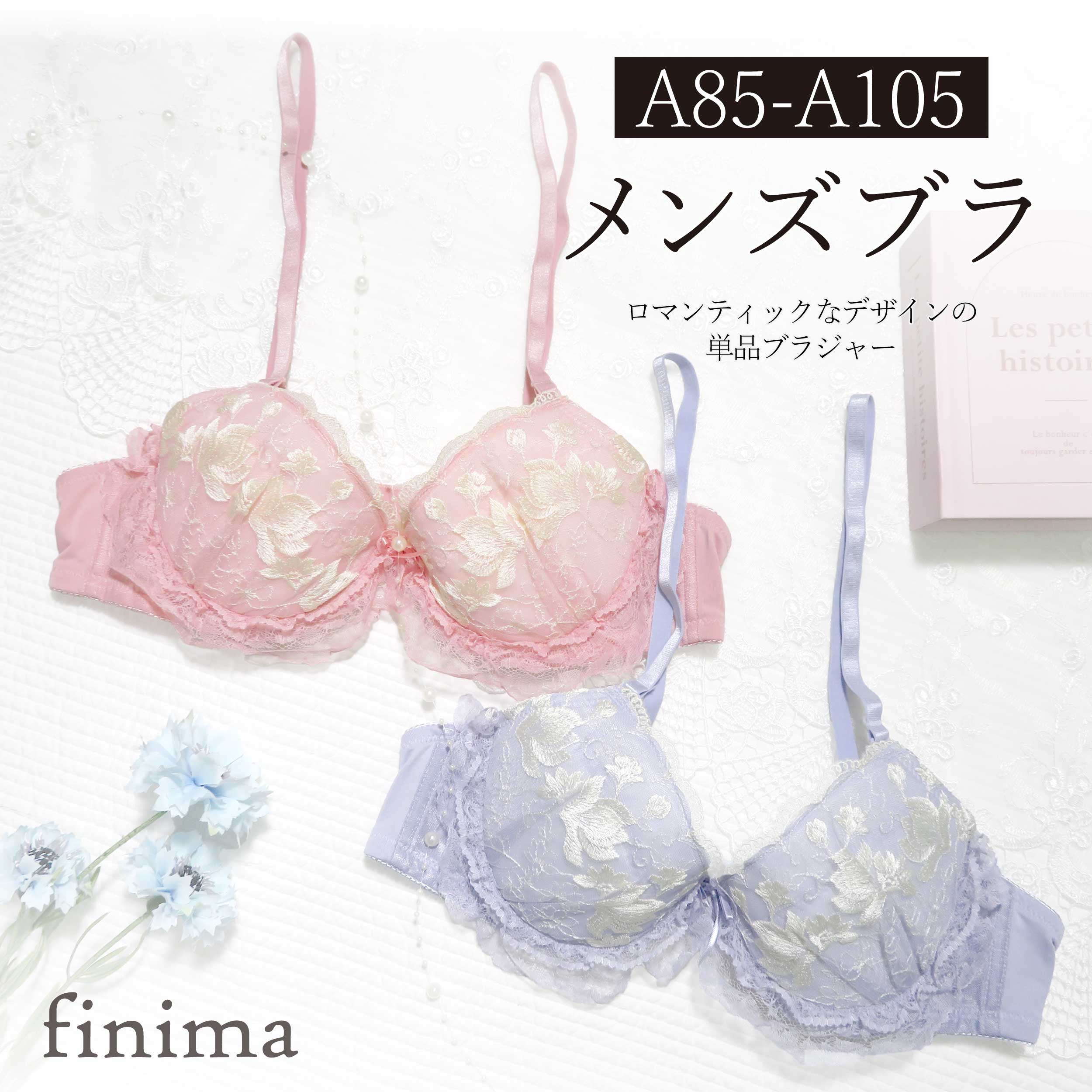メンズブラジャー A85-A105 リボン フリル 乙女チック 男性用 パッド入り (JM-3671・・・