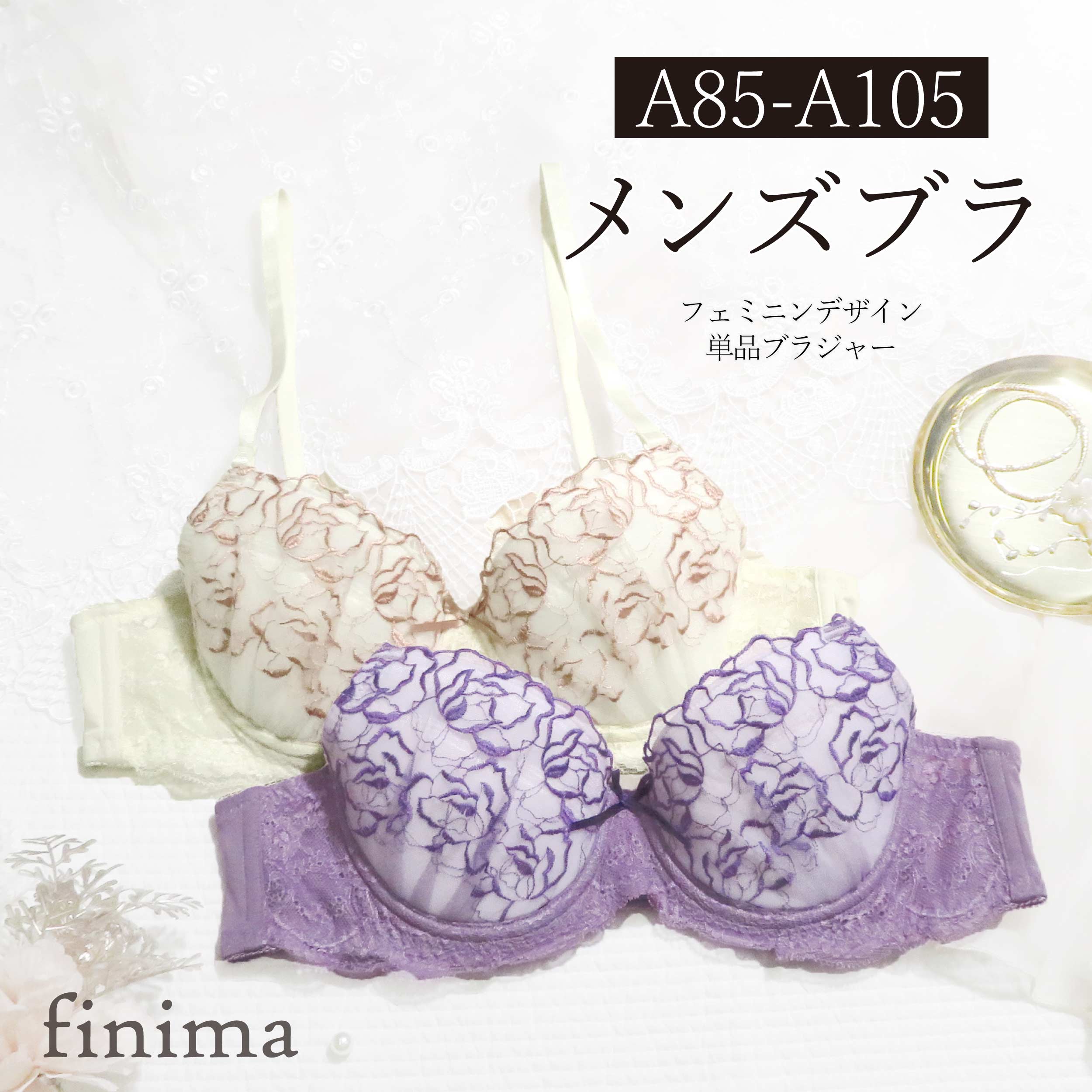 メンズブラジャー A85-A105 花刺繍 フェミニン 大人可愛い 男性用 パッド入り (JM-36・・・