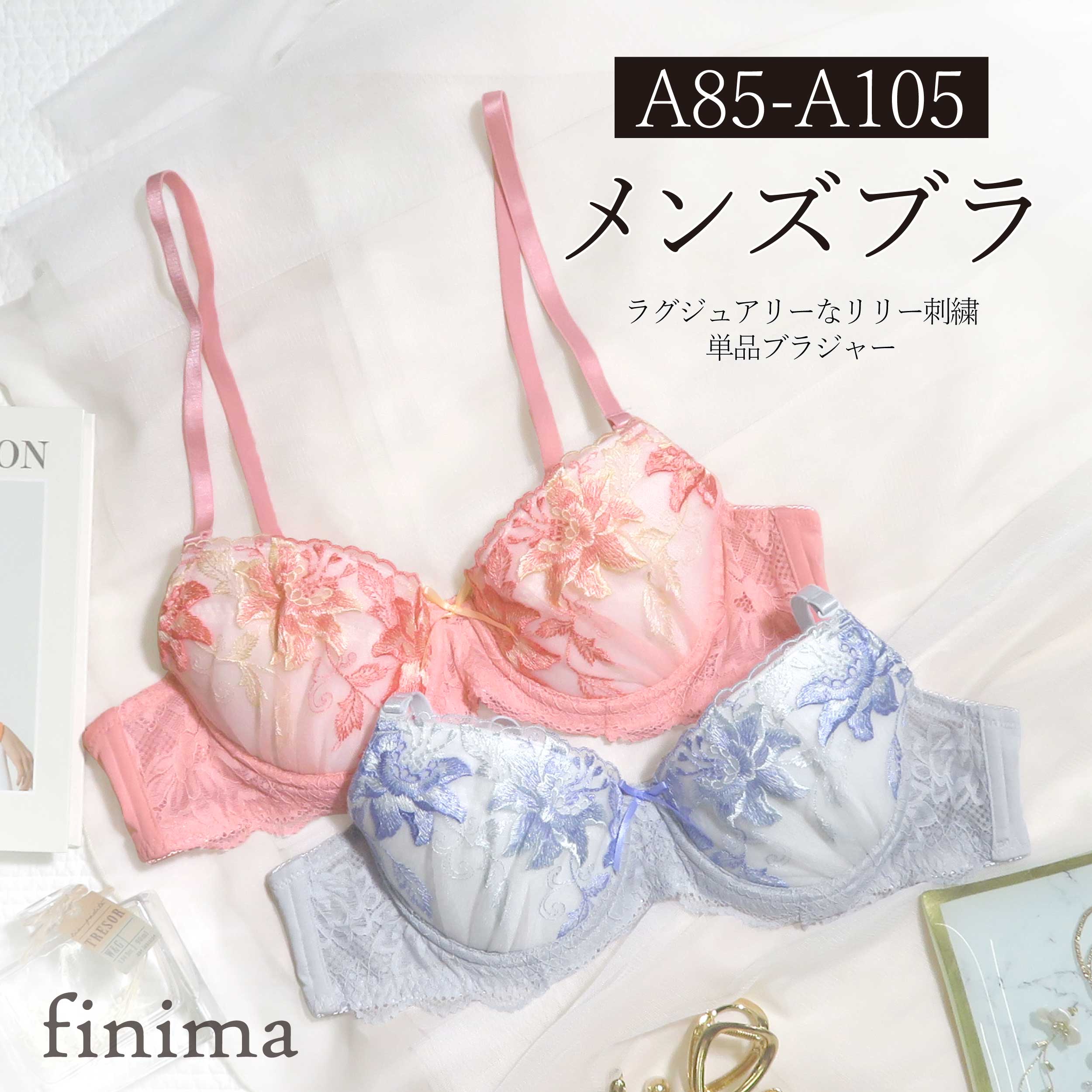 メンズブラジャー A85-A105 ユリ柄 刺繍 ラグジュアリー 男性用 パッド入り (JM-370・・・