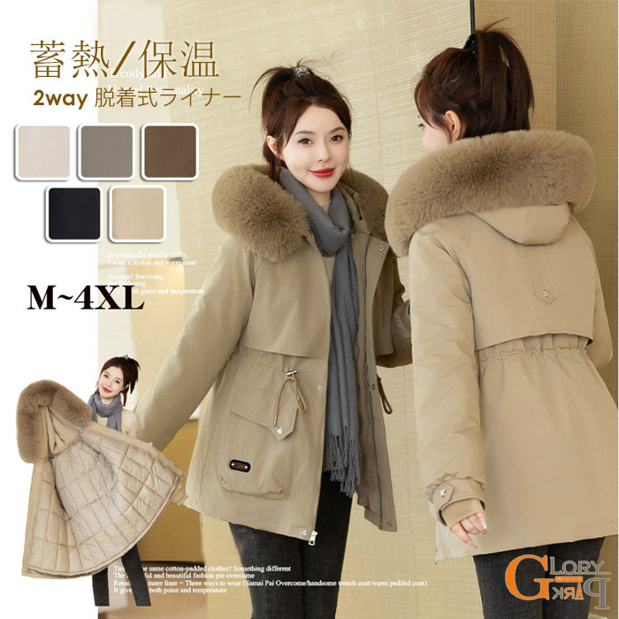 モッズコート レディース ライナー付き 中綿コート レディース フード付き 中綿モッズジャケット2w・・・
