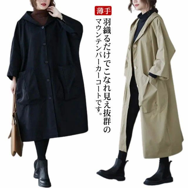 マウンテンパーカー レディース 春 秋 きれいめ 長袖 薄手 フード付き 防風 防寒 アウター ミリ・・・
