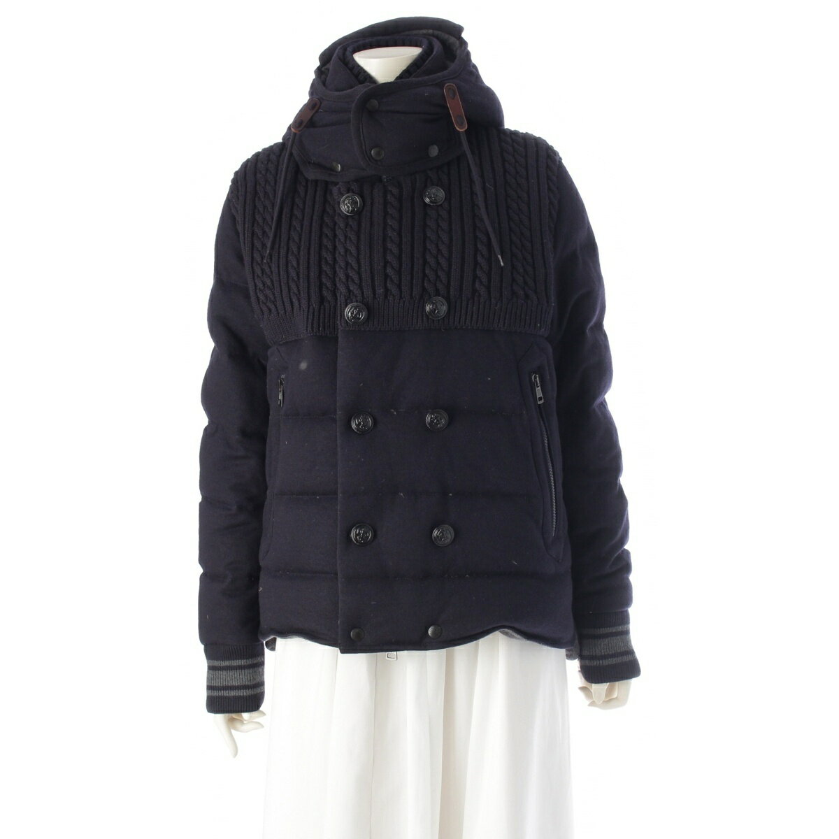 モンクレール MONCLER ガムブルー MONTPELLIER ウール ケーブルニット ダウンジャ・・・