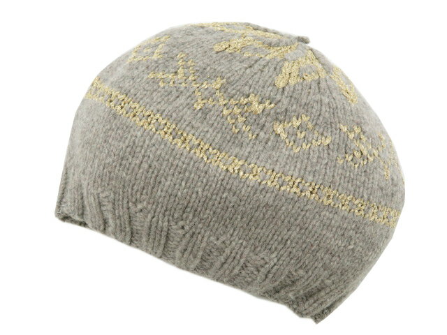 MONCLER ニット 帽子 グレー×ゴールド【中古】