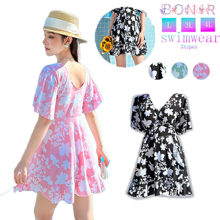 ワンピース 水着 レディース オールインワン パット付 体型カバー ラッシュガード リーフ柄 葉柄 ・・・