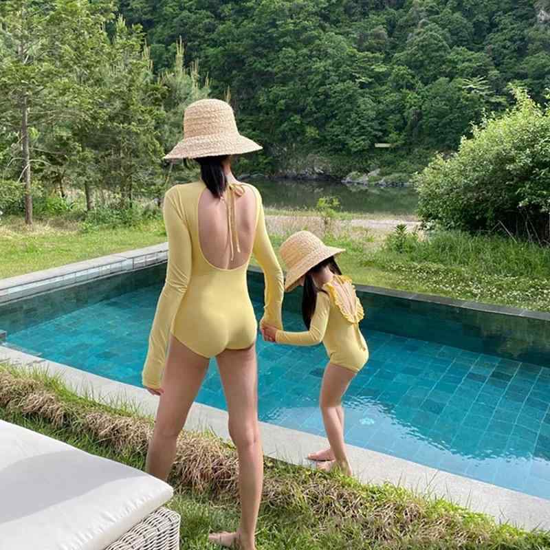 水着 女の子 ベビー キッズ 幼児 小学生 中学生 親子コーデ 長袖 ワンピース スイムウェア ラッ・・・