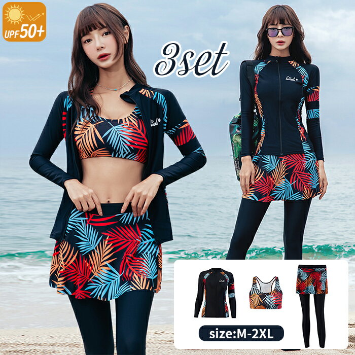 水着 フィットネス水着 レディース タンキニ UVカット 3点上下セット レギンス ラッシュガード ・・・