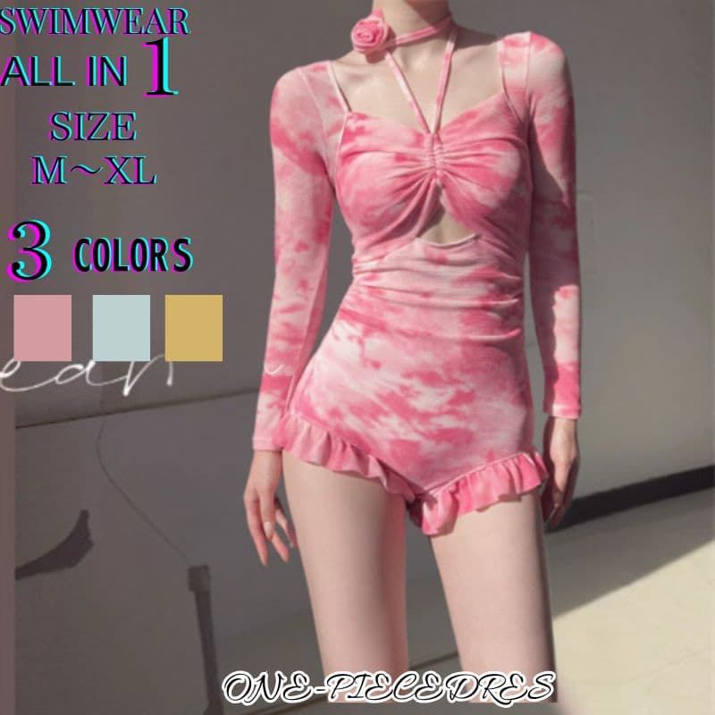 ★3色★ゼニスブルー ピンク イエローグリーン 水着 水泳 海水浴 ビーチ リゾート プール タンキ・・・