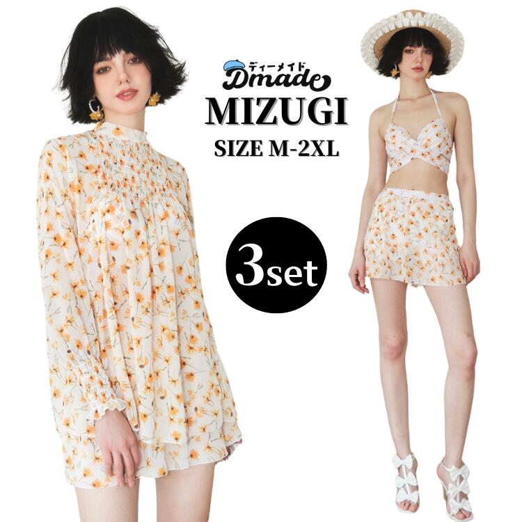 体型カバー 水着 レディース 長袖 ラッシュガード 3点セット セパレート ビキニ 花柄 ショートス・・・