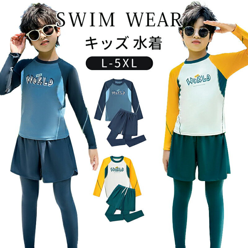 キッズ 水着 男の子 長袖ラッシュガード ハーフパンツ スイムキャップ 2点セット UPF50+ 紫・・・