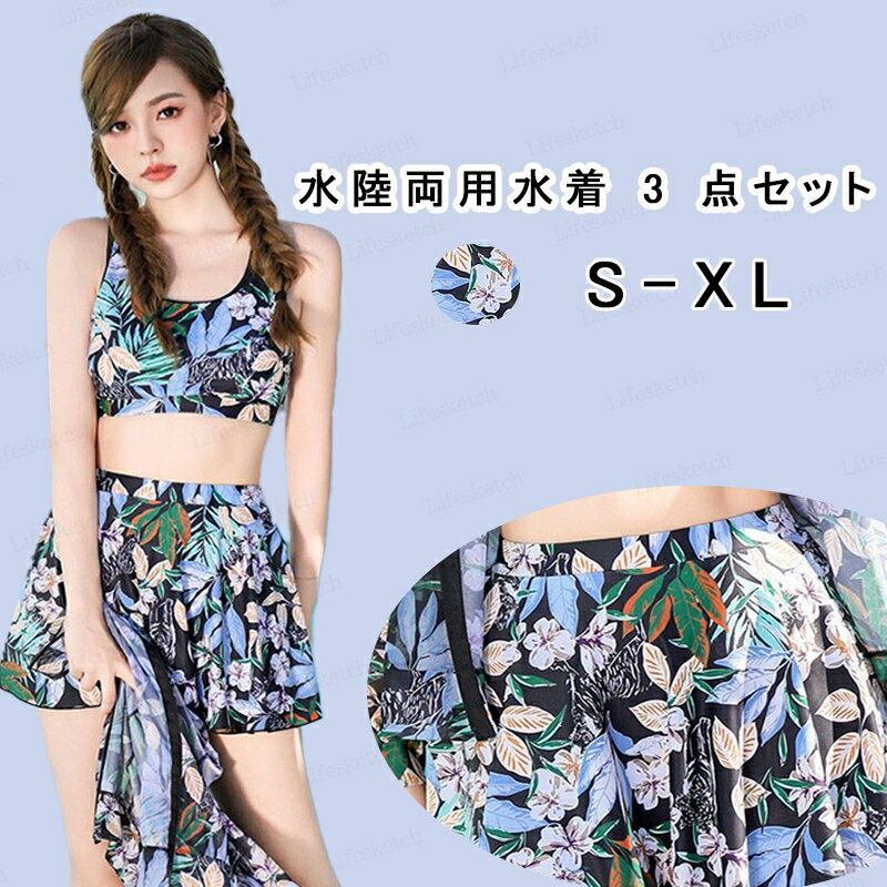 水着 レディース 3点セット 水陸両用 パーカー スポーツブラ ショートパンツ セパレート ラッシュ・・・