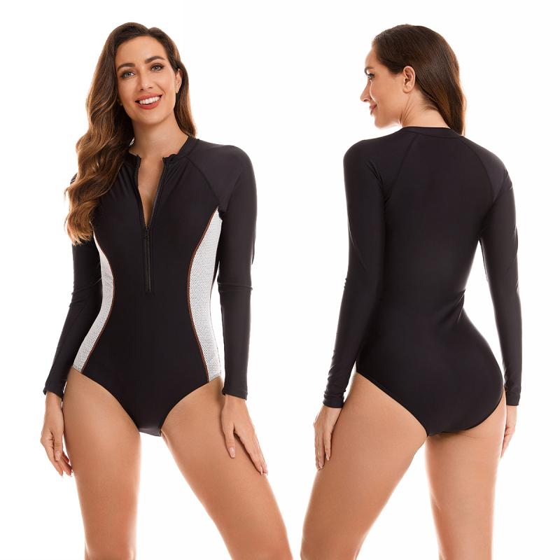 ワンピース 水着 レディース 長袖 ファスナー ラッシュガード 大きいサイズ 体型カバー 日焼け対策・・・