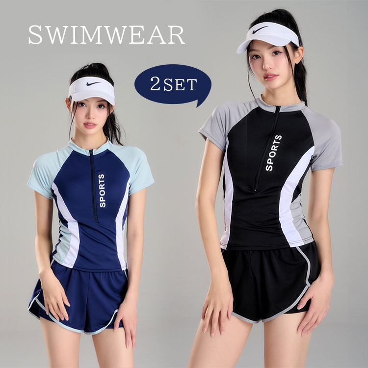 水着 レディース セパレート 高校生 学生 水着 半袖 ジュニア ラッシュガード フィットネス ショ・・・