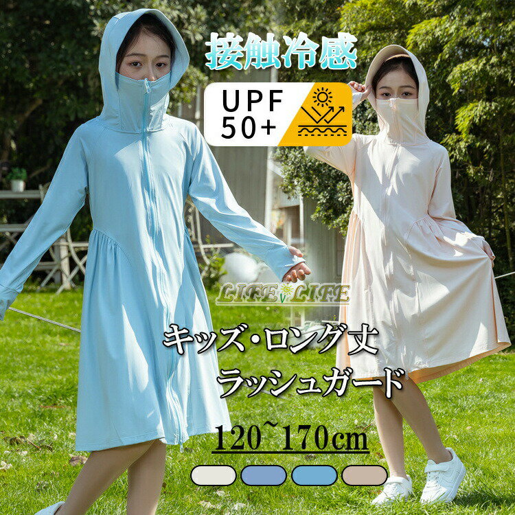 長袖 ラッシュガード キッズ 女の子 ロング丈 日焼け防止服 接触冷感 冷感ラッシュガード UVカッ・・・