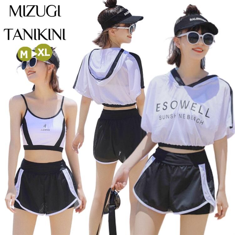 黒白 水着 高校生 韓国 水着 体型カバー レディース セパレート タンキニ ショートパンツ 3点セ・・・