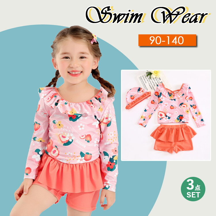 子ども水着 キッズ 女の子 セパレート UVカット 日焼け防止 子供 女児 子供用 キャップ付き こ・・・