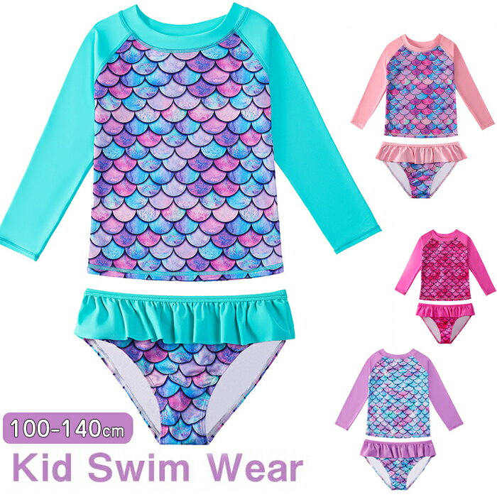 キッズ 水着 女の子 人魚 ラッシュガード セパレート 可愛い 人鱼姫 長袖 2点上下セット ベビー・・・