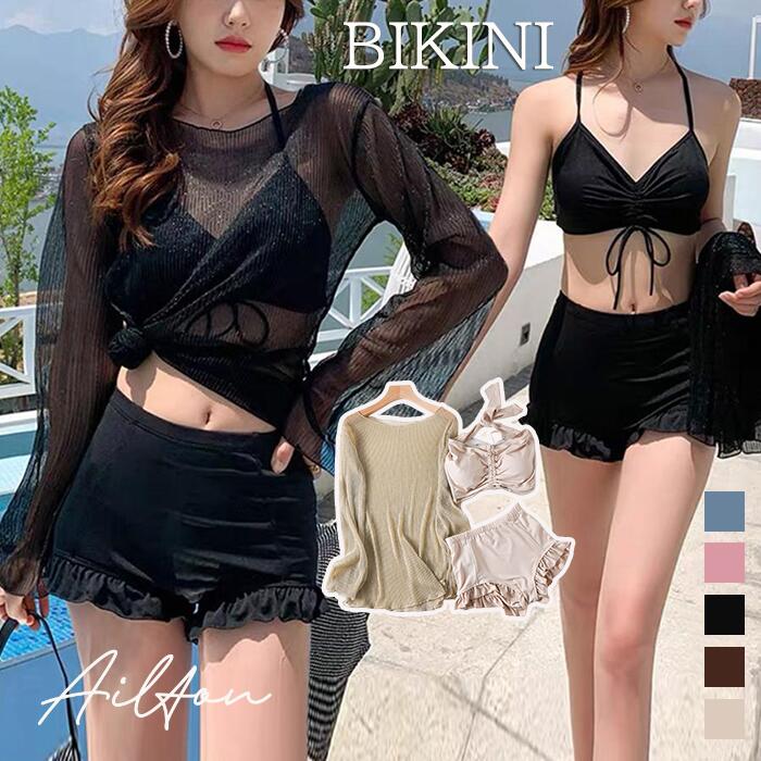 水着 レディース ビキニ 3点セット スイムウェア セパレート ラッシュガード ハイウエストショーパ・・・
