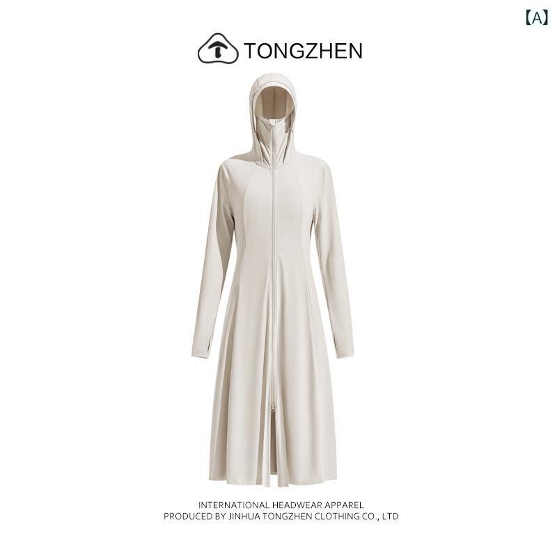 UVカットアウター レディース 長袖 薄手 ロング丈 ラッシュガード フード付き 日焼け防止 接触冷・・・