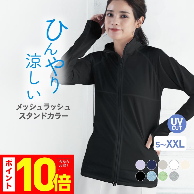 UVカット UPF50+ ラッシュガード S~3L 立ち襟 レディース フードなし 冷感 ひんやり ・・・