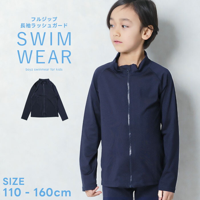 スクール水着 フルジップ長袖ラッシュガード キッズ水着 子供用 男の子 女の子 無地 フードなし ジ・・・
