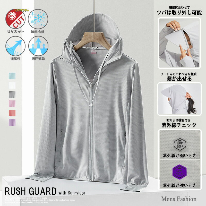 UV 接触冷感 アウトドア フード ラッシュガード ラッシュガード メンズ パーカー フェイスカバー・・・