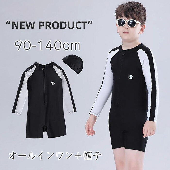 水着 男の子 半袖 ラッシュガード UV ロンパース 恐竜 キャップ付き 帽子付き 2-7歳 後開き・・・