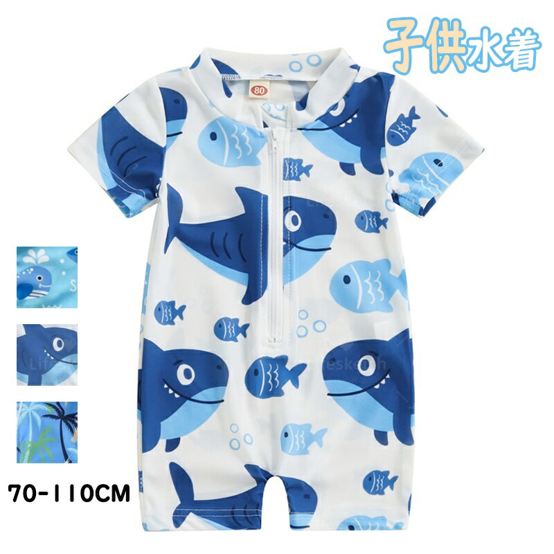 ベビー 水着 男の子 ラッシュガード ワンピース水着 キッズ 半袖 スイムウェア 赤ちゃん UVカッ・・・