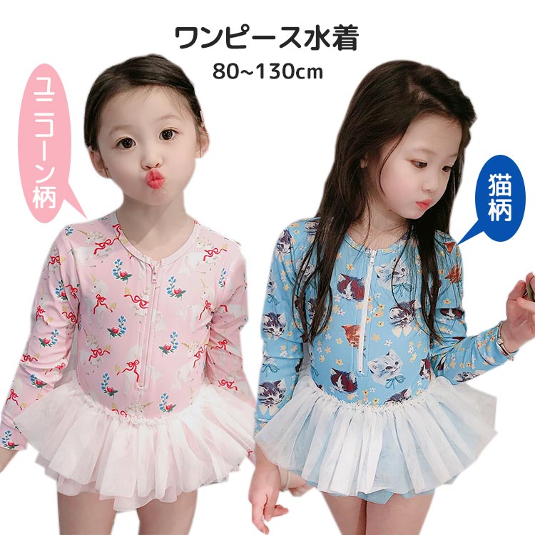 【送料無料】 ベビー 水着 ラッシュガード UPF50+ UVカット 女の子 ワンピース 等身ジッパ・・・