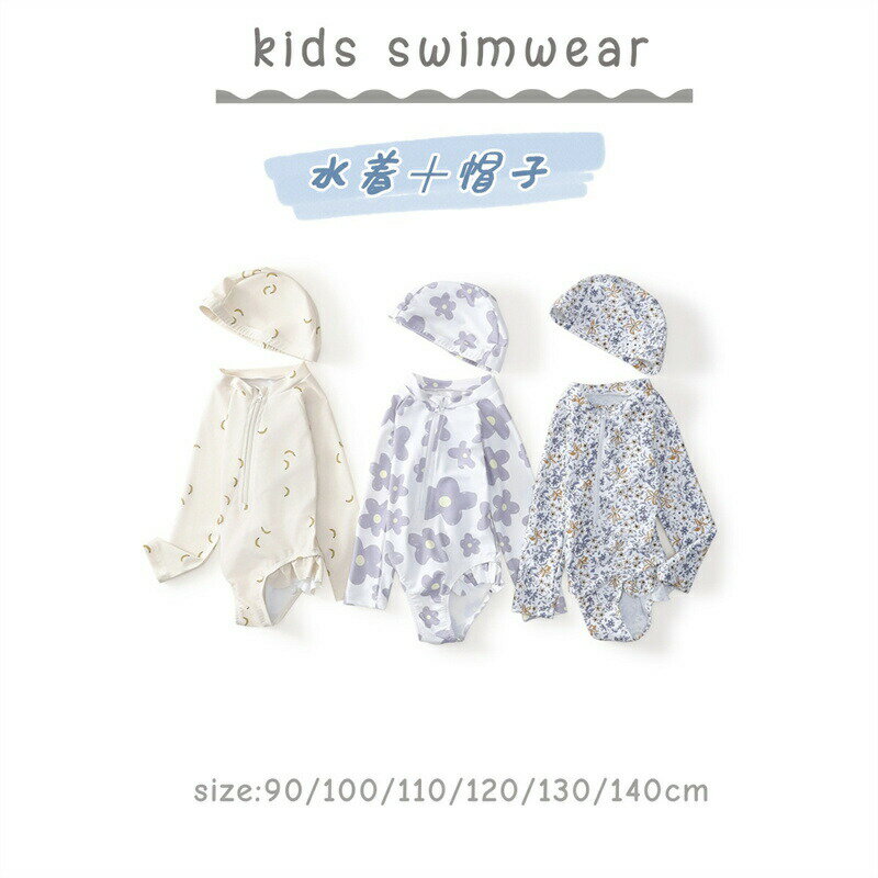 【送料無料】水着 女の子 2点セット ジュニア キッズ キャップ付き ラッシュガード 帽子付き 夏 ・・・