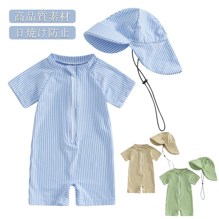 ベビー 水着 2点セット 男の子 女の子 帽子付き ベビー水着 ロンパース 子供 スイムウェア UV・・・