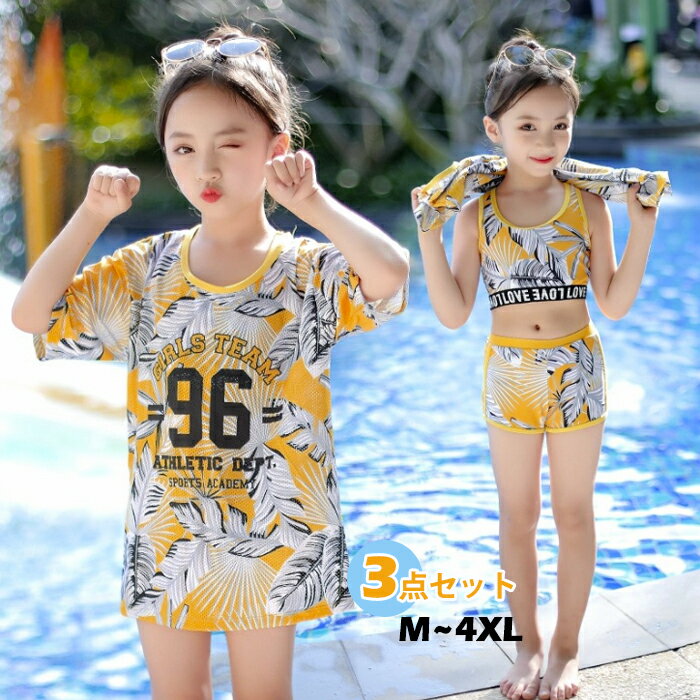 水着 女の子 セパレート 3点セット 子供 ラッシュガード 上下セット 長袖 レギンス トランクス ・・・
