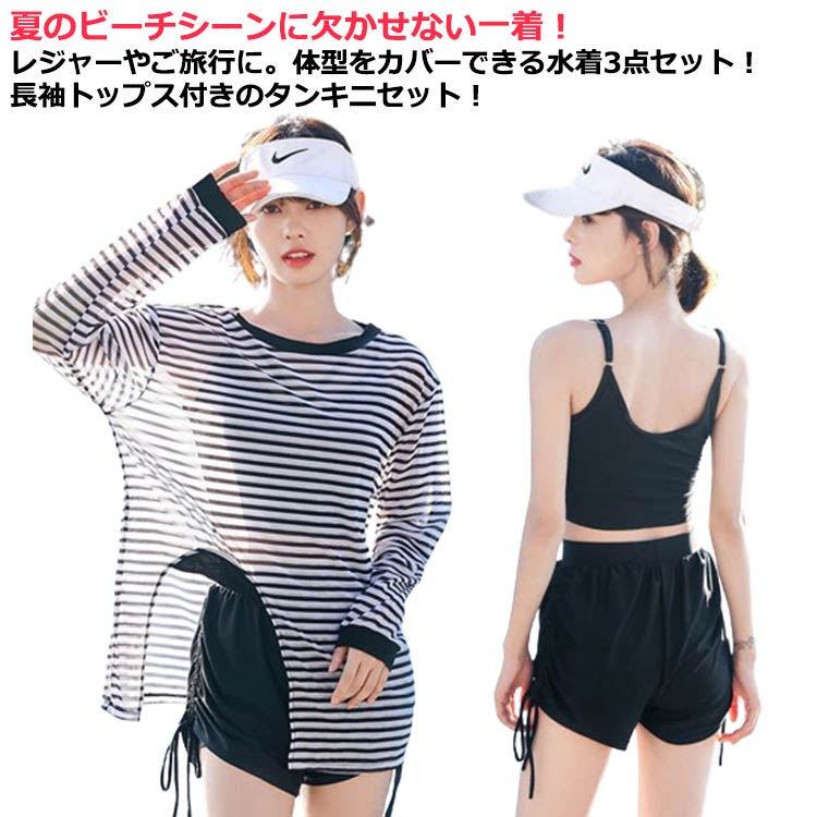 水着 レディース 3点セット 体型カバー水着 セパレート 20代 30代 40代 タンキニ ママ水着・・・