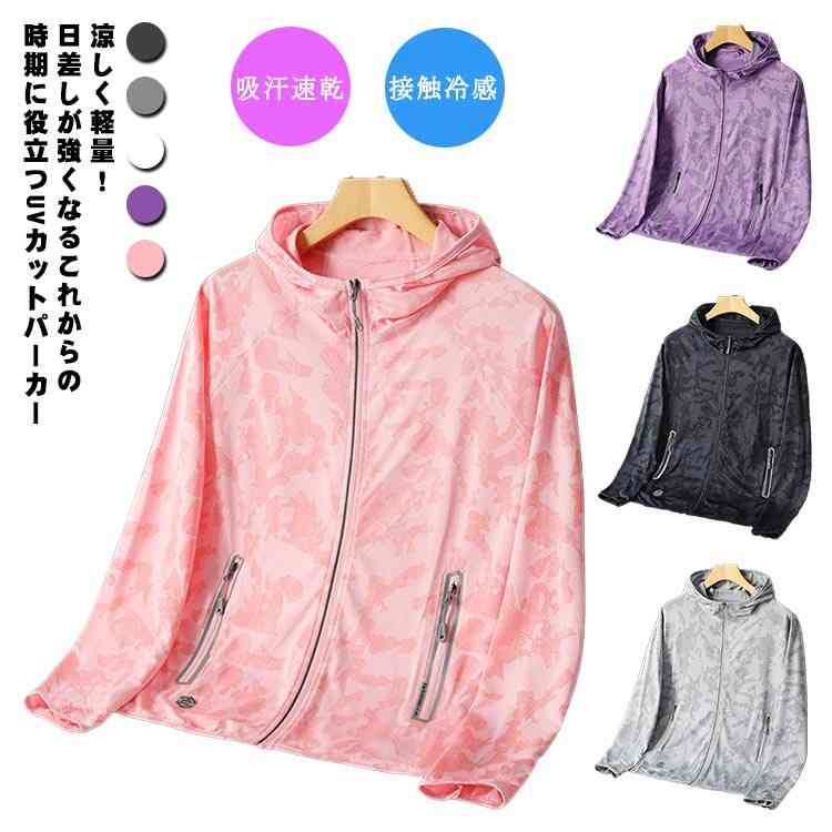 長袖 レディース 薄手 冷房対策 フード付き 速乾 ラッシュガード 軽量 無地 大きいサイズ 紫外線・・・