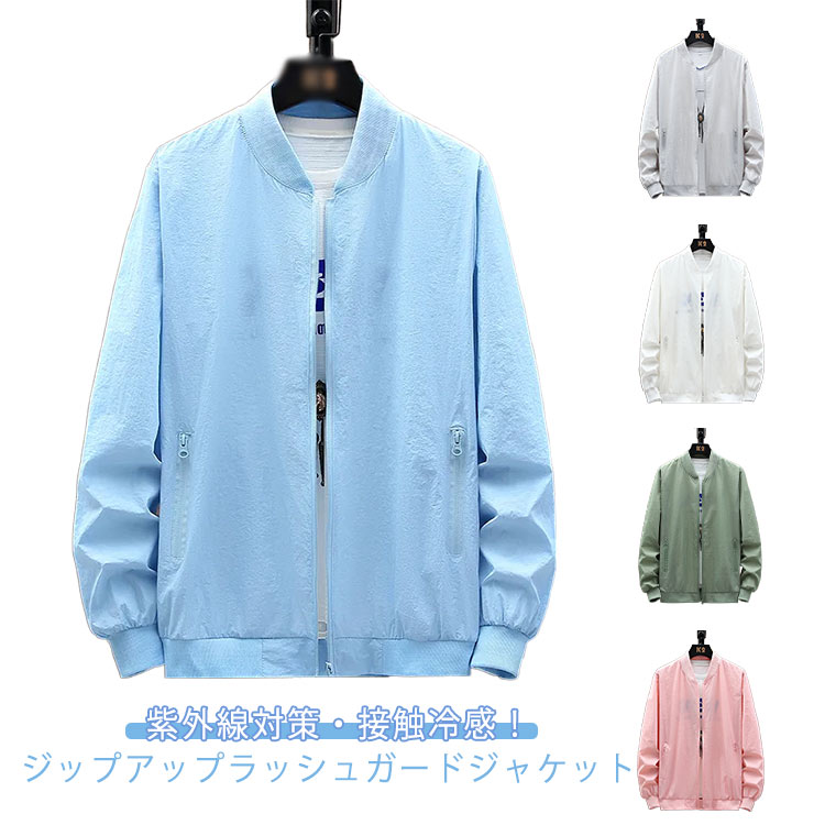 メンズ ひんやり UVカット 紫外線対策 夏用 ジャケット ブルゾン ラッシュガード 無地 スタジャ・・・