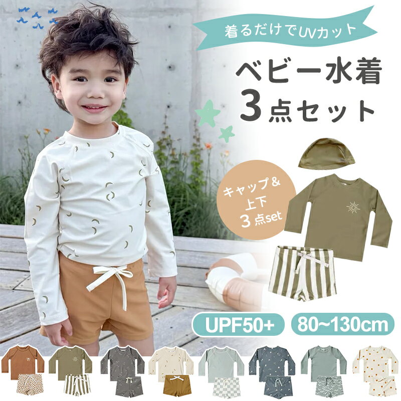 水着 キッズ ベビー 男の子 3点セット 子供 カジュアル スイミング スイムウエア セパレート ラ・・・