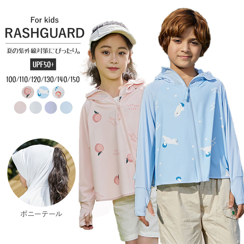 【選べる2タイプ】ラッシュガード パーカー ジュニア キッズ 女の子 長袖 ジップアップ フードあり・・・