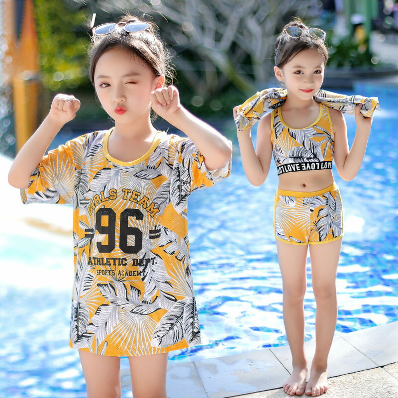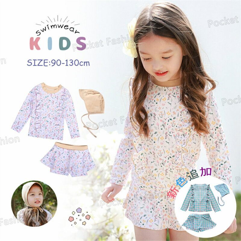 【送料無料】キッズ 水着 女の子 トランクス 子供水着 セパレート 3点セット ジュニア 水着 長袖・・・