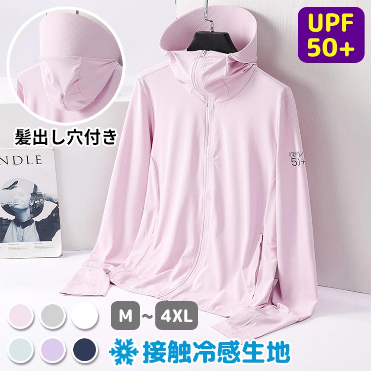 uvカット パーカー UPF50+ 指穴 髪出し穴 つばあり フェイスマスク 花粉対策 日焼け防止 ・・・