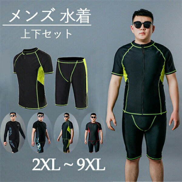 メンズ水着上下セットラッシュガード長袖レギンスロングパンツ大きいサイズ3L4L5L6L7L8L9L1・・・