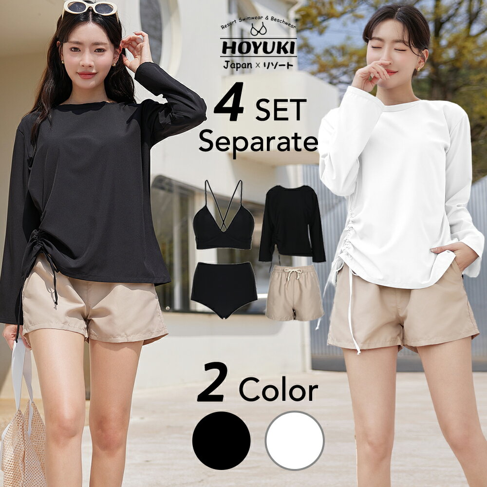 水着 レディース 体型カバー ビキニ 長袖シャツ ラッシュガード ショートパンツ 4点セット ハイウ・・・